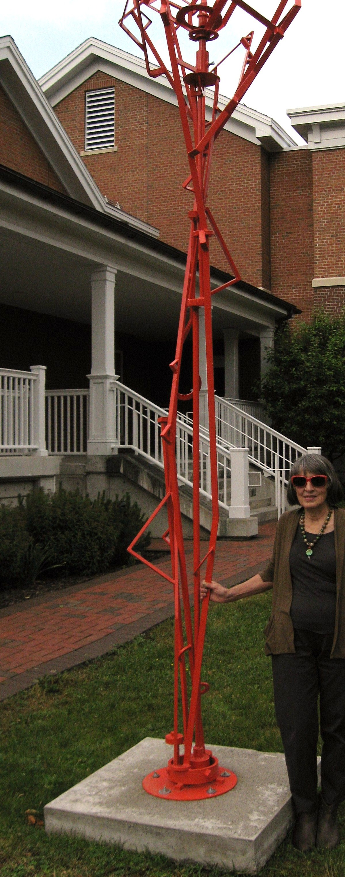 Leaving the show, the color Orange again caught my eye – outside of the Art Gallery at Reisman Hall on the Cazenovia Collge Campus was this wonderful Orange sculpture. So my journey continues looking for ORANGE to inform my art.