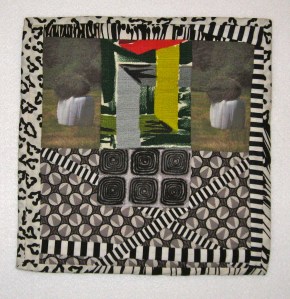 This piece that includes my photo images of the “marshmallows” and hay bales that I view while driving by the local farmlands near my home/studio was just sent off to meet the early deadline for the Fall 2012 SAQA One Foot Square Auction. Titled “Twins with Matching Hats” (12H x 12W inches) it is made of all cotton materials, some vintage fabrics, and is hand quilted. The September SAQA Auction is a wonderful opportunity to purchase fiber art priced from $75 – $750. More details on the viewing of all the works on line and the bidding schedule for this fundraiser will be posted on my blog sometime during the month of June. So is it time to start saving up that “Green Stuff” – what do you think!