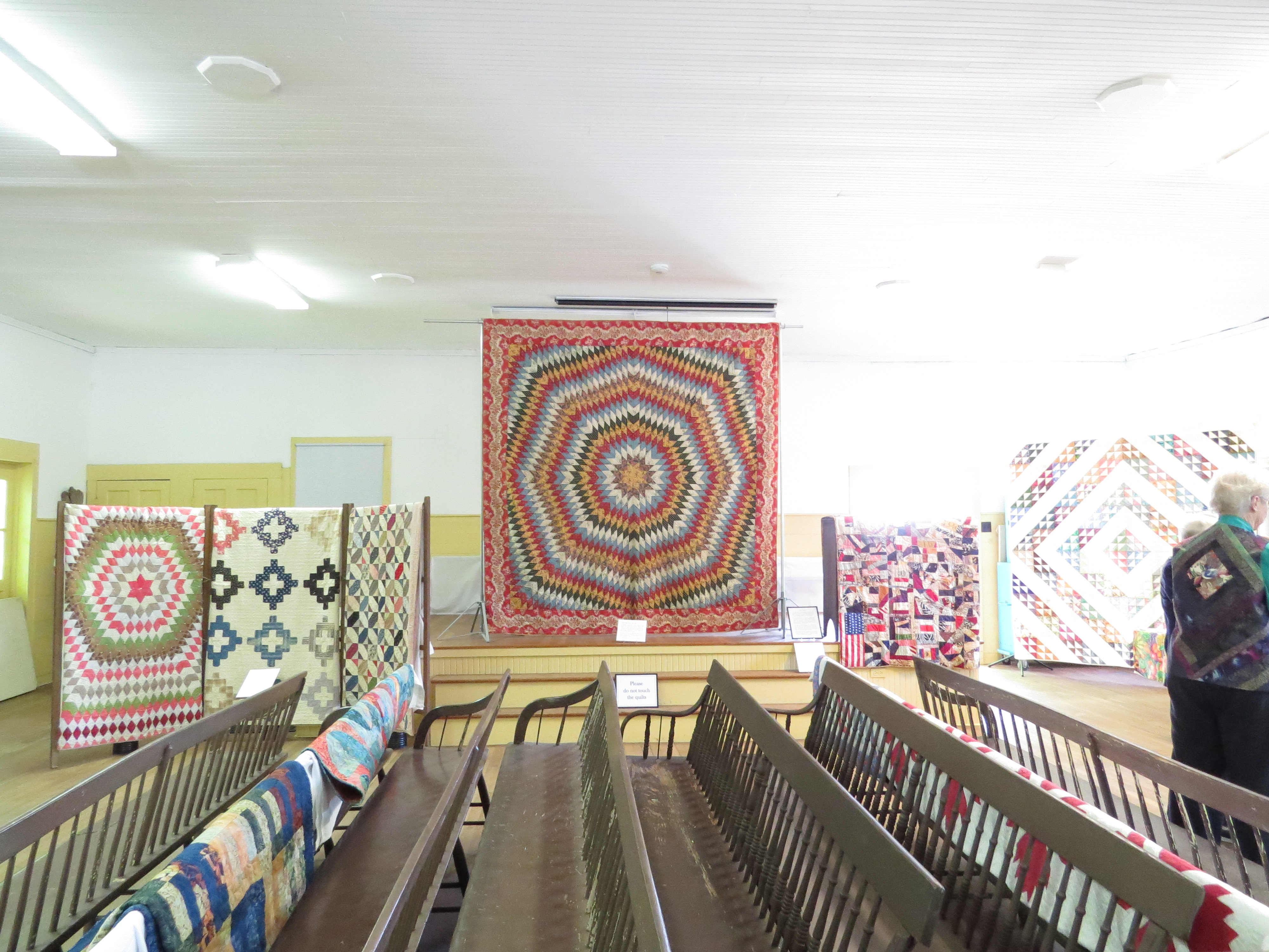 So, I assume that most of you spent this beautiful June 1st day outdoors. Since I was invited to participate in the Mansfield Historical Society’s Museum Opening of “Antique and Vintage Quilts”, I was inside for the afternoon surrounded by fine workmanship, beautiful fabrics and a stunning display of antique quilts, like this one shown below;
