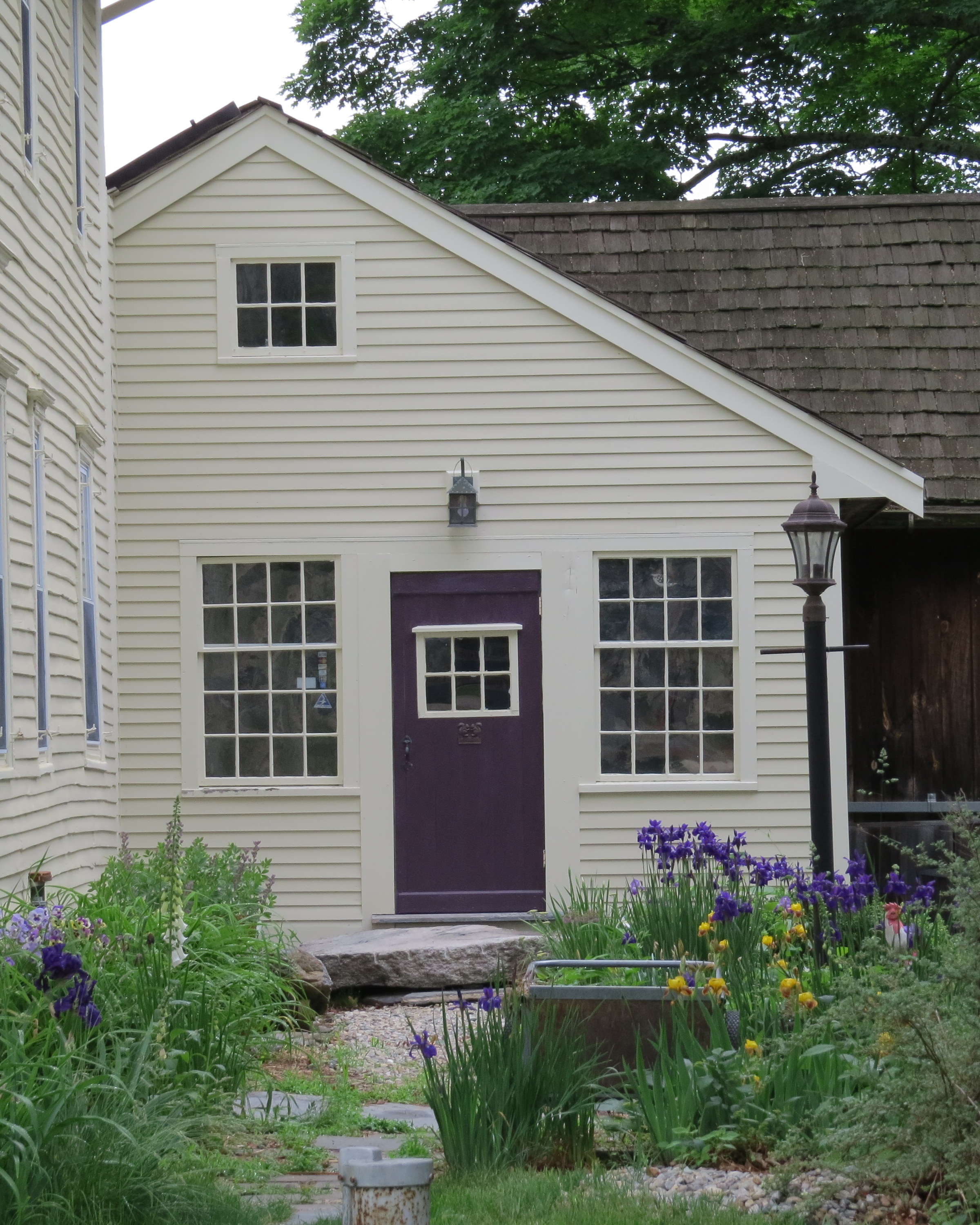 One of her favorite quilt patterns was the “Grandmother’s Flower Garden”. I am privileged to own the very last quilt that she completed in that pattern, and will have it on display in my home for CT OPEN HOUSE 2015. “Her home called the Gurley Tavern, c. 1822 was built as a stagecoach inn the year Chaplin was incorporated. In the photo to the right you can see the molded pilasters with decorated capitals that frame the entryway. The Chaplin Post Office was located in the downstairs north parlor from 1950 to 1965.” (Historic Homes of Chaplin Village by Johanna Philbrick). Here is a better view of one of the lovely and inviting side entrances;
