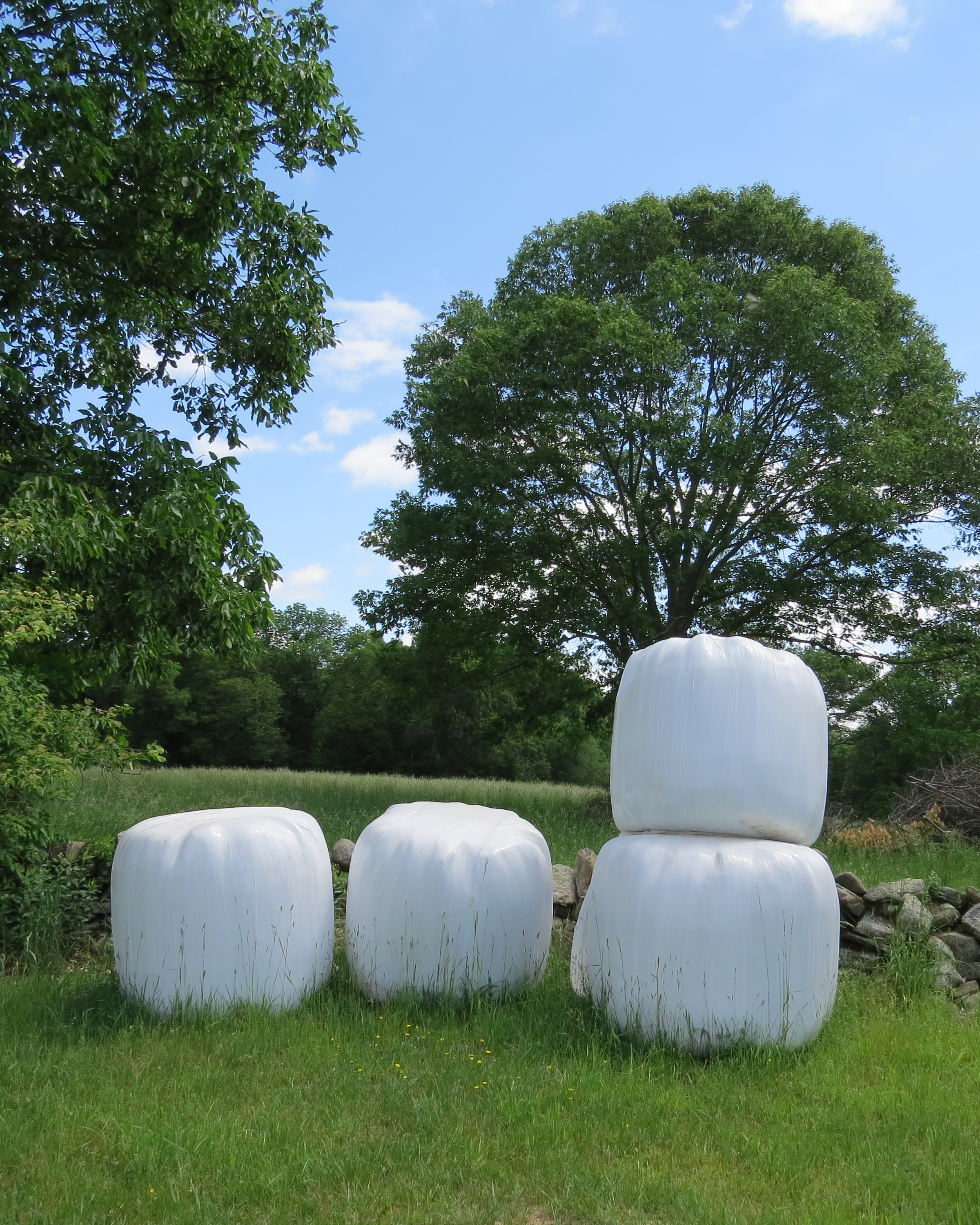 Yesterday, I decided to check out one of my favorite spots to take photos of rolled hay packed in white plastic. A quick 6 minute drive from my home @ 44 Chaplin Street brought me to the Atwood Farm located @ 624 Wormwood Hill Road. This 19th century home is now the headquarters for Joshua Trust – Conservation and Historic Trust, Inc. It will also be open for CT Open House Day 2015 and will have a few of my quilts on display.