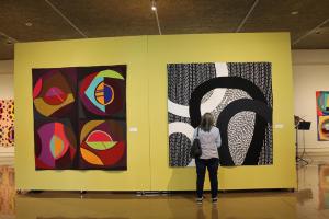 So. I am back from a 2-day workshop at QBL and I also had a chance to see the second part of Nancy Crow’s invitational show, which includes 21 artists; Titled: Circular Abstractions: Bull’s Eye Quilts. On view June 3rd, – August 20th, 2017. This photo from their Facebook page tells it all. BIG ART QUILTS – pure joy to see and examine close up, and yes there is a book on the entire show.