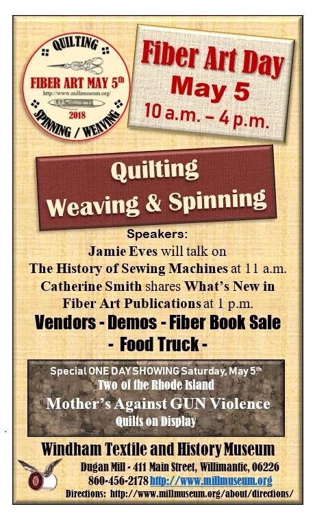 Catherine Whall Smith . . . shares a “SAVE THE DATE” May 5th, 2018 at the Windham Textile & History Museum
