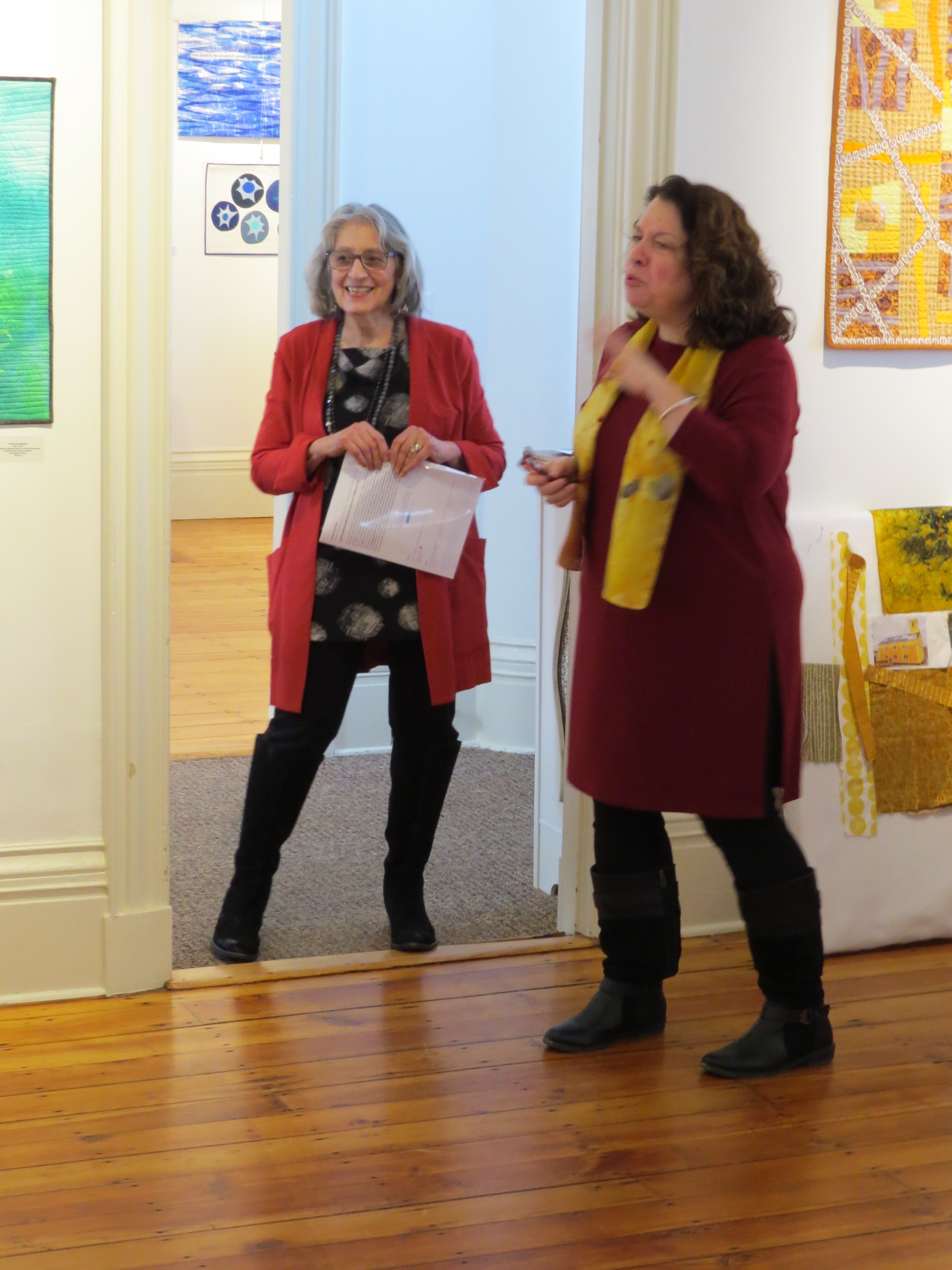 Catherine Whall Smith and Joan Blade Johnson at the “Stitched” Opening