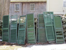 Pat’s post made me start looking around at interesting shapes and lines in our back yard. Here are some old house shutters that might lead to a few fabric studies in my studio.