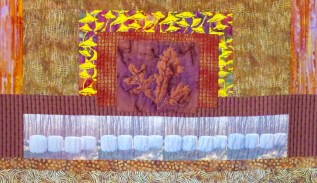 Getting ready for Connecticut’s “Hang – a – Quilt” Day on Saturday, June 20th, 2020 – time to decide which piece I will hang on our side porch. Right now with all that is happening, I’m thinking “Pain” (59H x 53W). It was juried into the 1993 Greater Denton Arts Council exhibition; “Materials: Hard and Soft” in Denton Texas ; and was show at the UConn Library/Thomas Dodd Center during my retrospective show “Line Dances” in 1212.