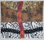 (shown right) was completed in 2008. At that time I was in love with the Art of Vuillard, a post Impressionist Master. The pictures below shows sections of “Orange Peels” in the early design phase. Completing sections gave me the ability to arrange and rearrange them on my design wall – before the final stitching.