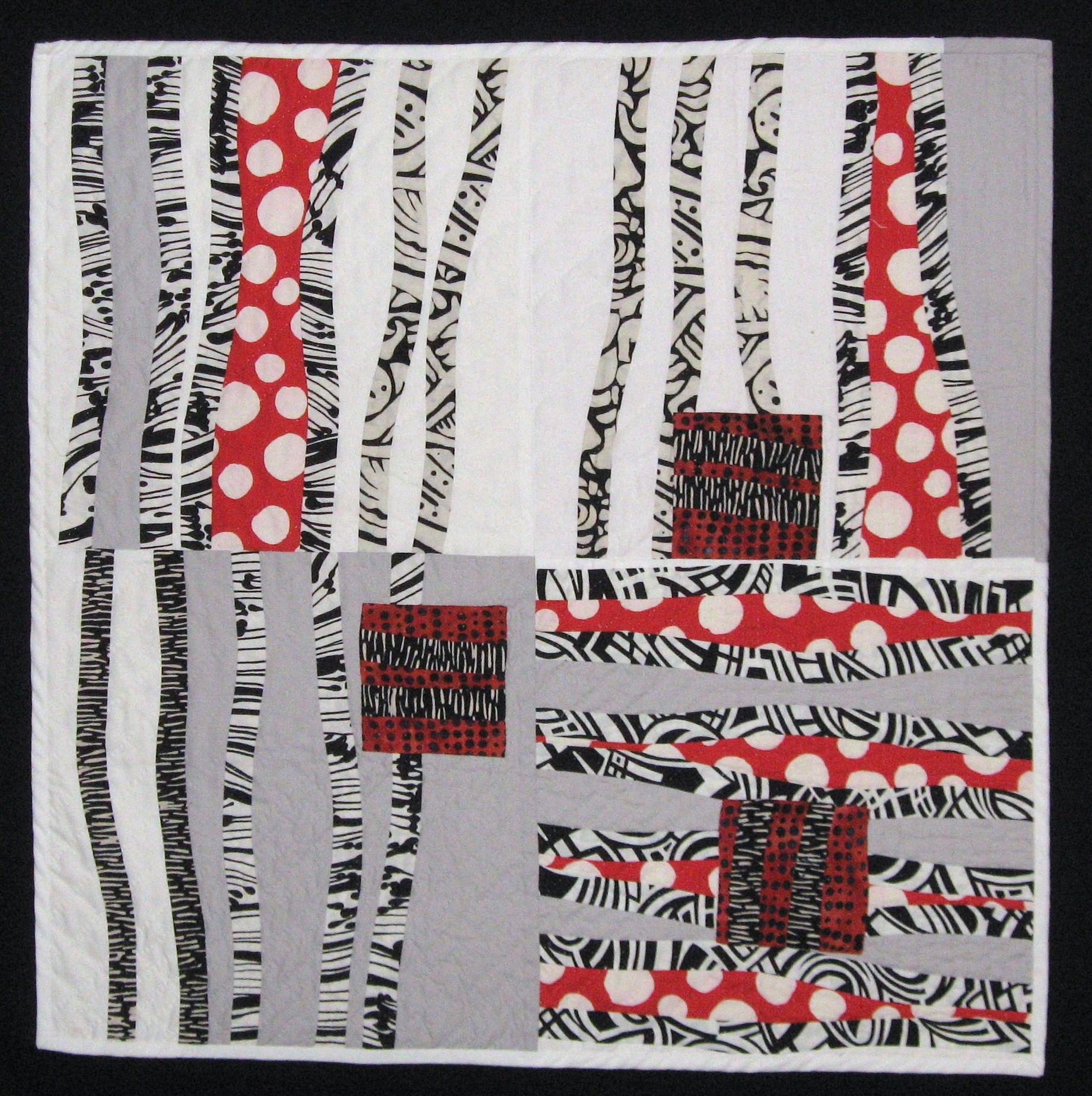 After returning to Connecticut from Denver , I was then on my way to Copenhagen, Denmark – for a week of Art & Architecture, and shopping. I actually found some wonderful Orange fabrics right out of the 60’s that I plan to use in one of my pieces. (Using the color Orange has always been a wonderful experience for me – such as when I worked on this 2009 quilt titled “Brush Strokes”. Below are a couple more pictures with that wonderful color Orange – blankets tossed on each chair for warmth at an outdoor cafe and the bright Orange on the train doors – I think the lavender arrows on the side of the train will definitely work their way into a future quilt. “Which way to Lund?”
