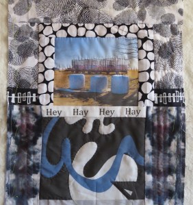 Since a lot of my hand quilting is completed using the design lines on the back of the piece, I thought I would share the back of my piece in Quilt National 2021 – “Transfusion . . . in TWO PARTS” (61H x 71W). Using the printed design on this vintage fabric I eliminated any pencil lines that might compromise the fabric. It took many months to hand quilt this piece. The enlarged image below shows the lines of hand-quilting. To see the quilt front and my video about the piece go to; https://www.youtube.com/watch?v=Dkt7tArAL7E . Enjoy!